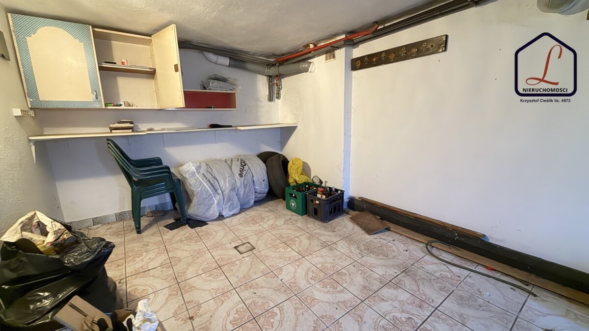 Przyziemie: garaż, kotłownia, warsztacik , dwa pomieszczenia gospodarcze, miejsce na węgiel lub drewno.