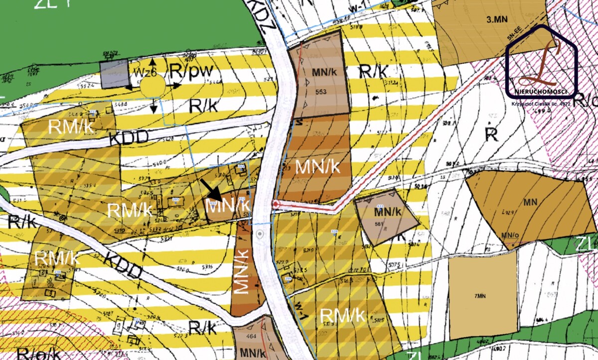Nieruchomość posiada aktualny plan zagospodarowania przestrzennego oznaczony symbolem: MN/k - tereny zabudowy mieszkaniowej jednorodzinnej w obszarze eksponowanym widokowo.