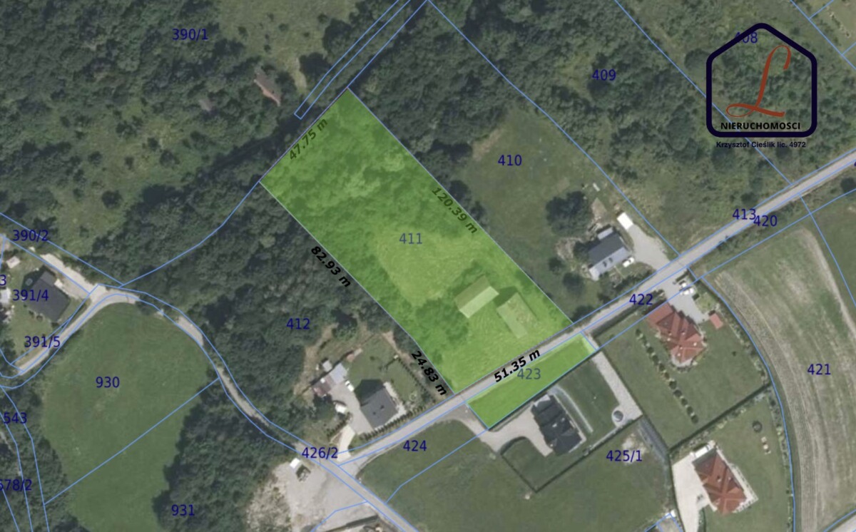 Nieruchomość składa się z dwóch działek ewidencyjnych nr 411 oraz 423 .